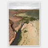 Where The River Runs Unframed Art Print - Your eyes are immediately led to the fork of the river and along the meandering path to places not yet discovered. Earthy tones of desert white and rich red ochre nudge up to the riverbanks and dappled trees in deep green are in the foreground. The harmony of natural tones and soft brush strokes in this painterly landscape artwork will invoke the wanderlust into your space.