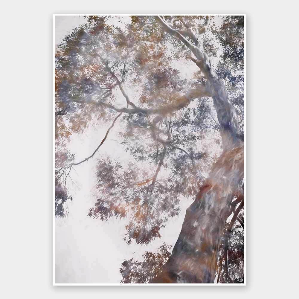 Whispering Jack I Unframed - Abstract artwork of a gumtree in blues, brownes and mauves, a modern twist on a floral still life. 2016 WINTER COLLECTION: INSPIRE