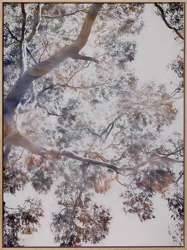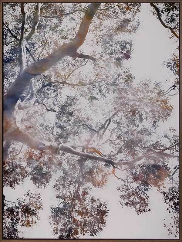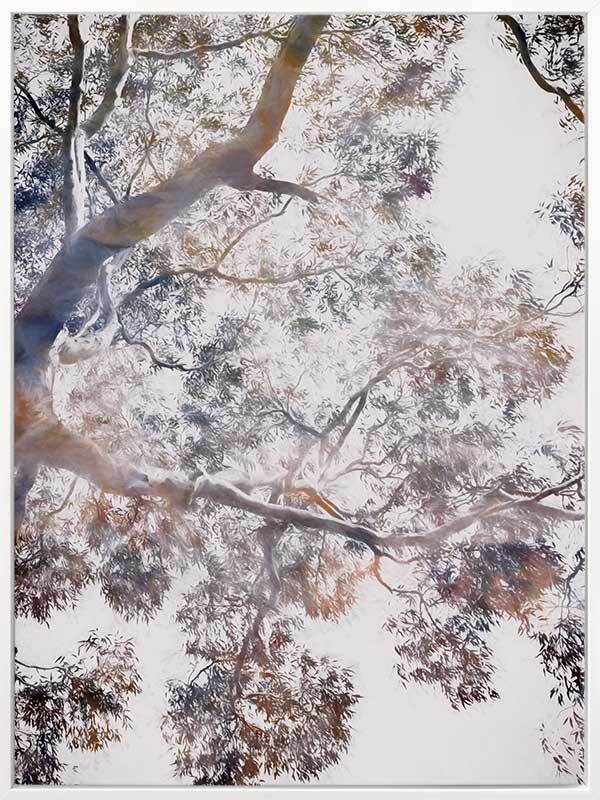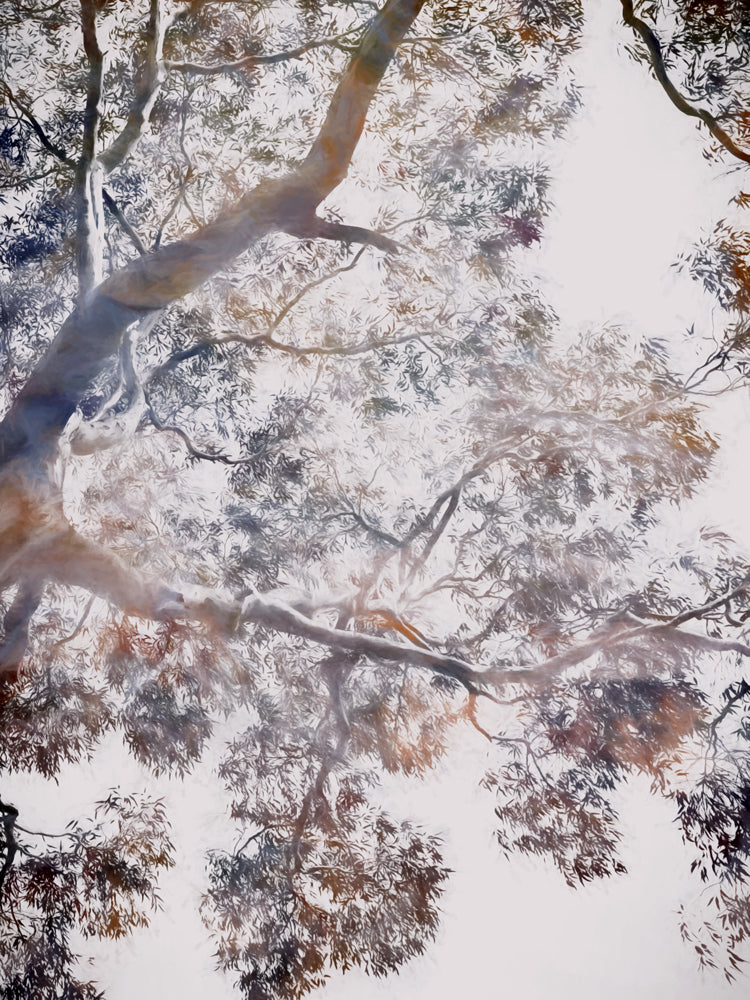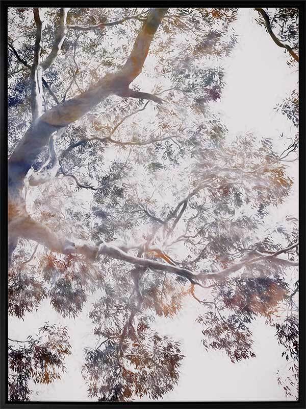 Whispering Jack II Canvas Art Print - Abstract artwork of a gumtree in blues, brownes and mauves, a modern twist on a floral still life. 2016 WINTER COLLECTION: INSPIRE