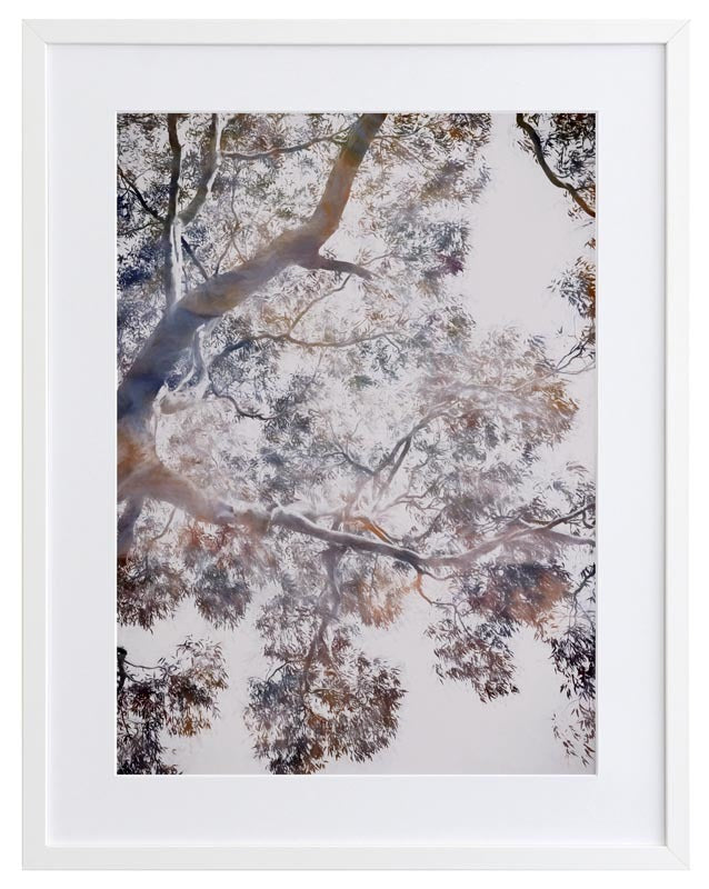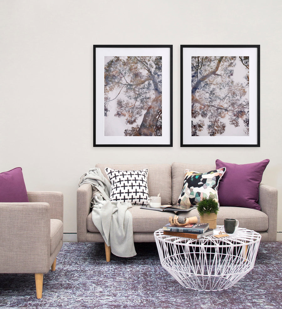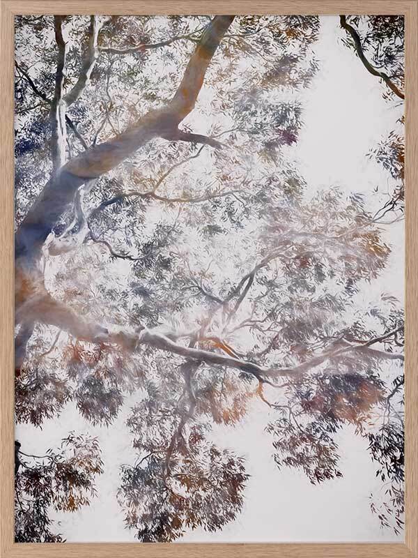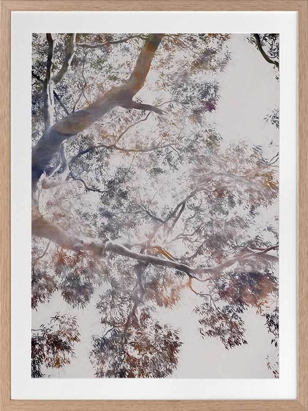 Whispering Jack II Framed - Abstract artwork of a gumtree in blues, brownes and mauves, a modern twist on a floral still life. 2016 WINTER COLLECTION: INSPIRE