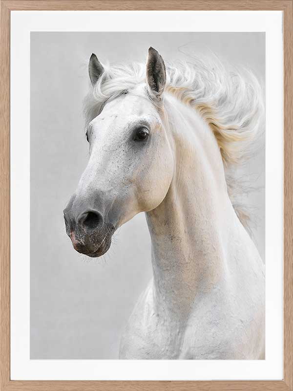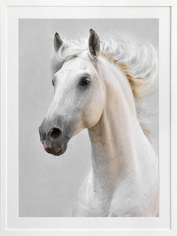 White Beauty - A stunning photographic portrait of a white horse against a grey background.