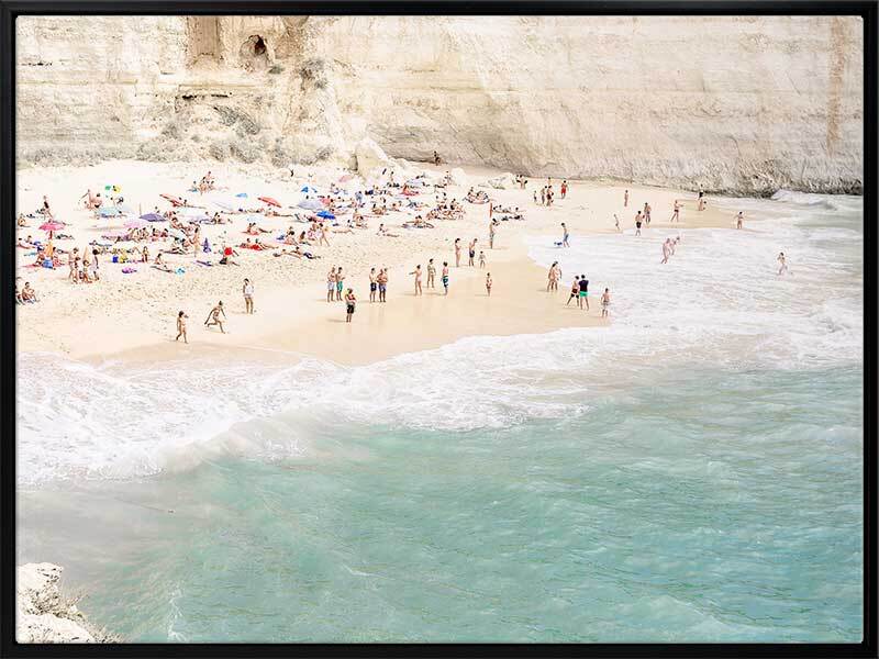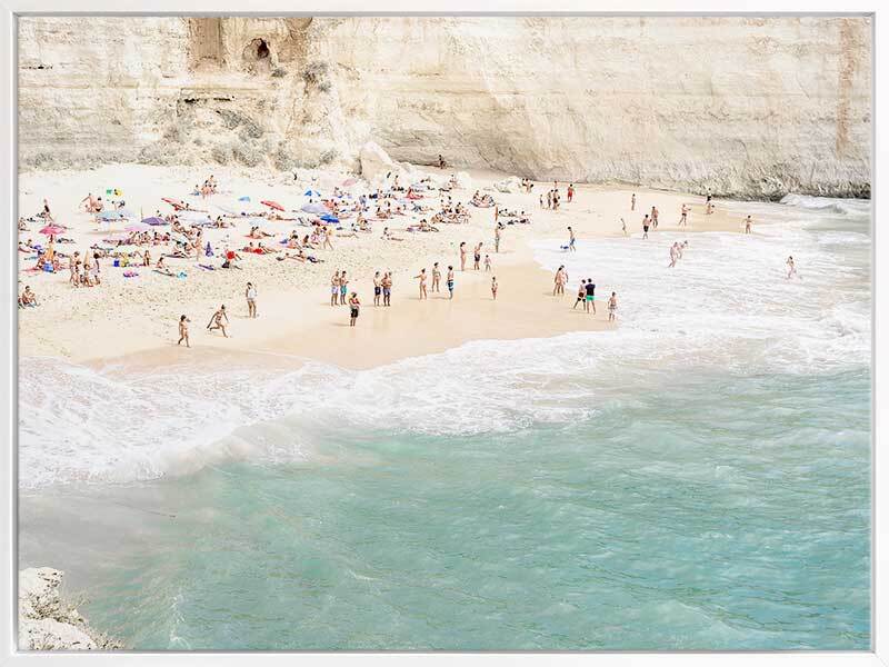 White Cliff Beach Canvas Art Print: A photograph of a busy seashore filled with people, and surrounded by white cliffs. 2019 SPRING/SUMMER COLLECTION: SOLSTICE