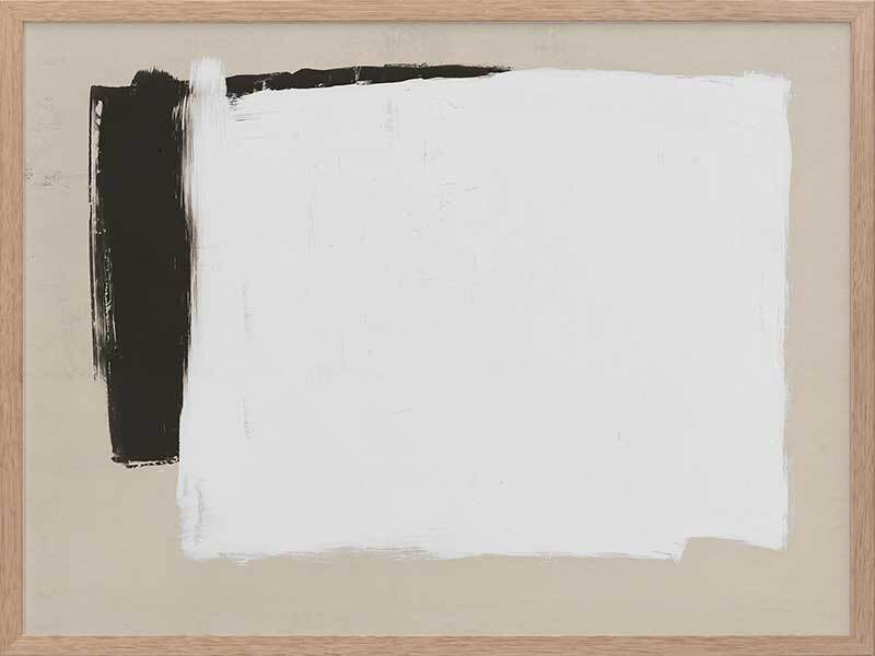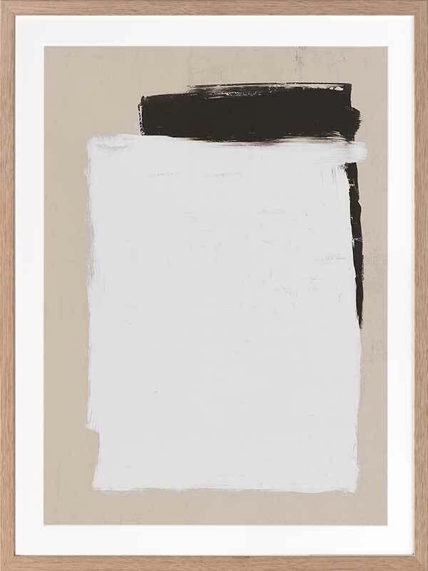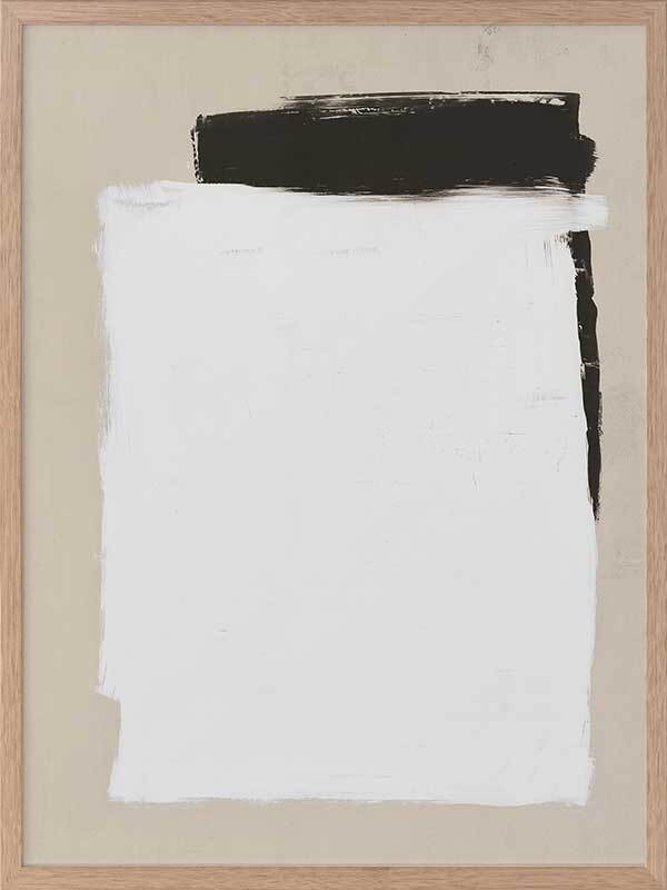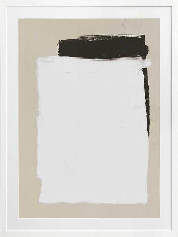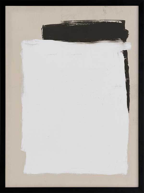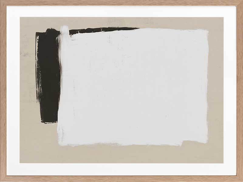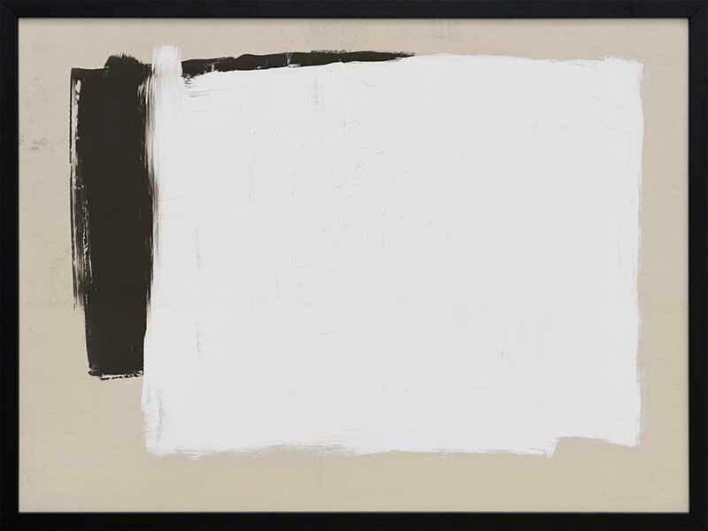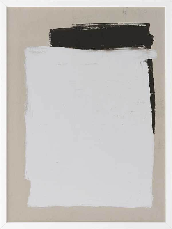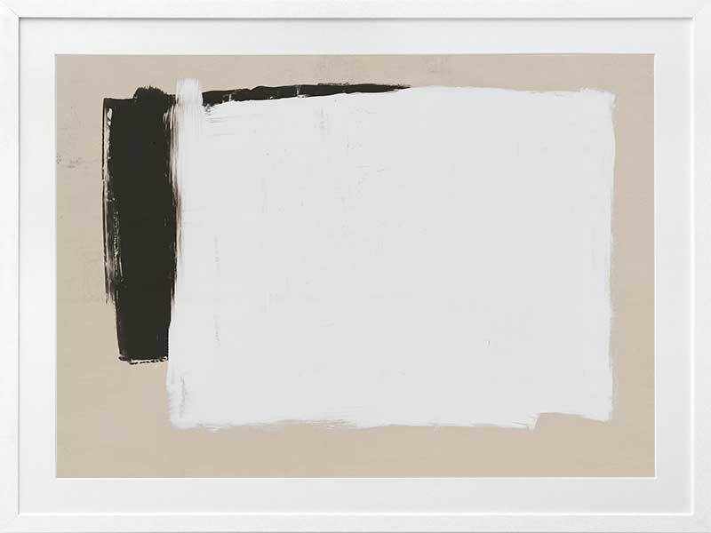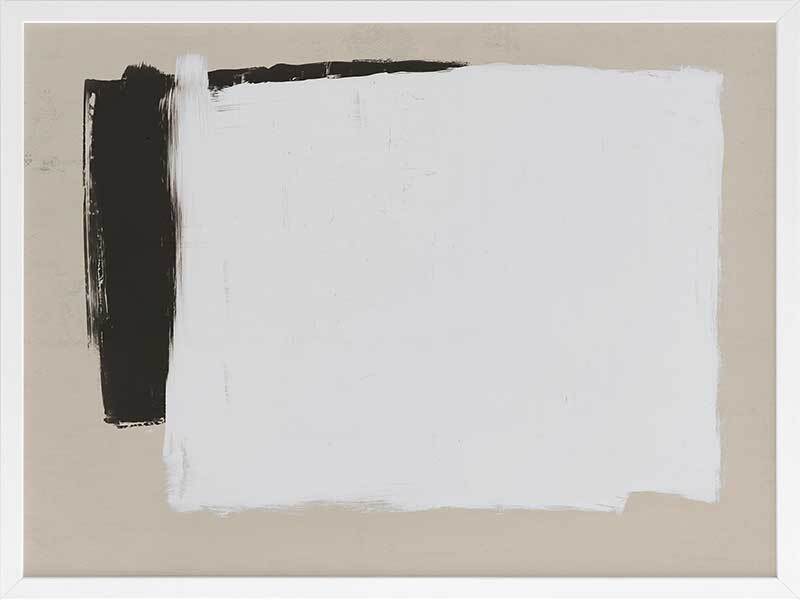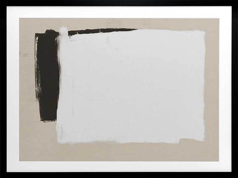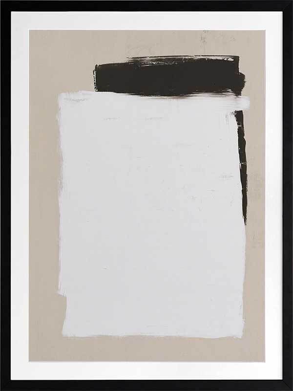Whiteboard Framed Art Print - Precise in its imprecision, this clean cut print depicts monochrome shapes on a beige backdrop. Like a blank whiteboard ready to let your ideas flow freely, this modern piece is stylish in its simplicity, both in form and palette. The backdrop of stone connects the two with harmony, solidarity and trust. The broad-brush strokes compliment the boldness of this contemporary piece.