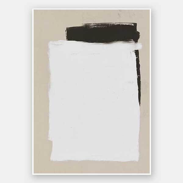 Whiteboard Unframed Art Print - Precise in its imprecision, this clean cut print depicts monochrome shapes on a beige backdrop. Like a blank whiteboard ready to let your ideas flow freely, this modern piece is stylish in its simplicity, both in form and palette. The backdrop of stone connects the two with harmony, solidarity and trust. The broad-brush strokes compliment the boldness of this contemporary piece.