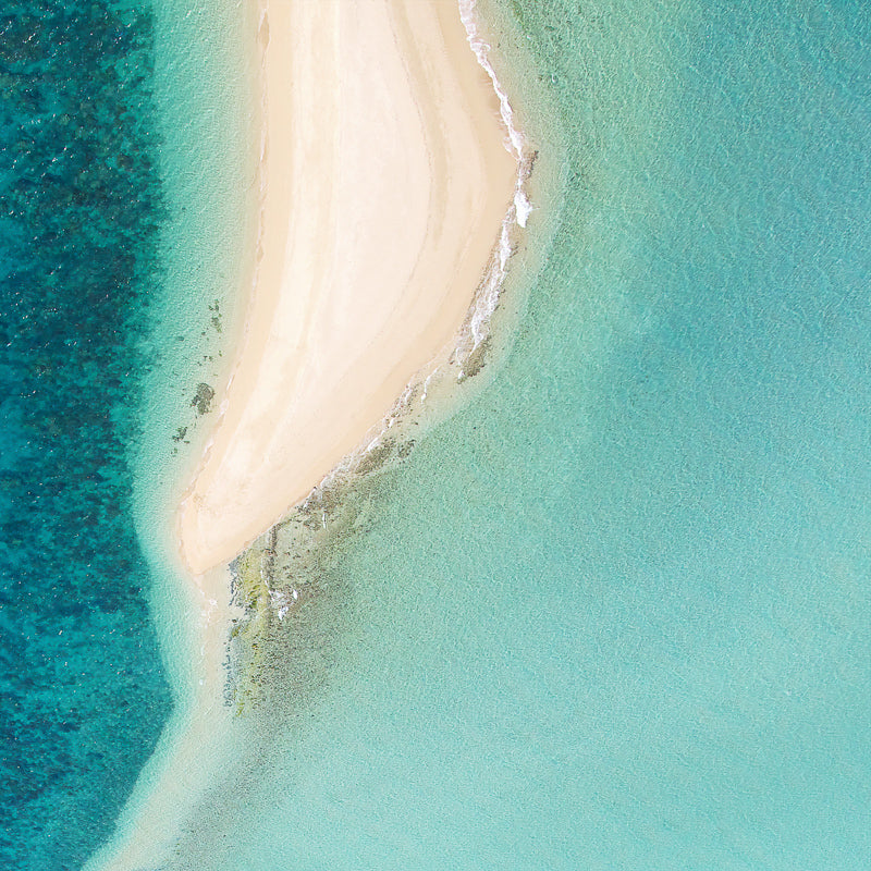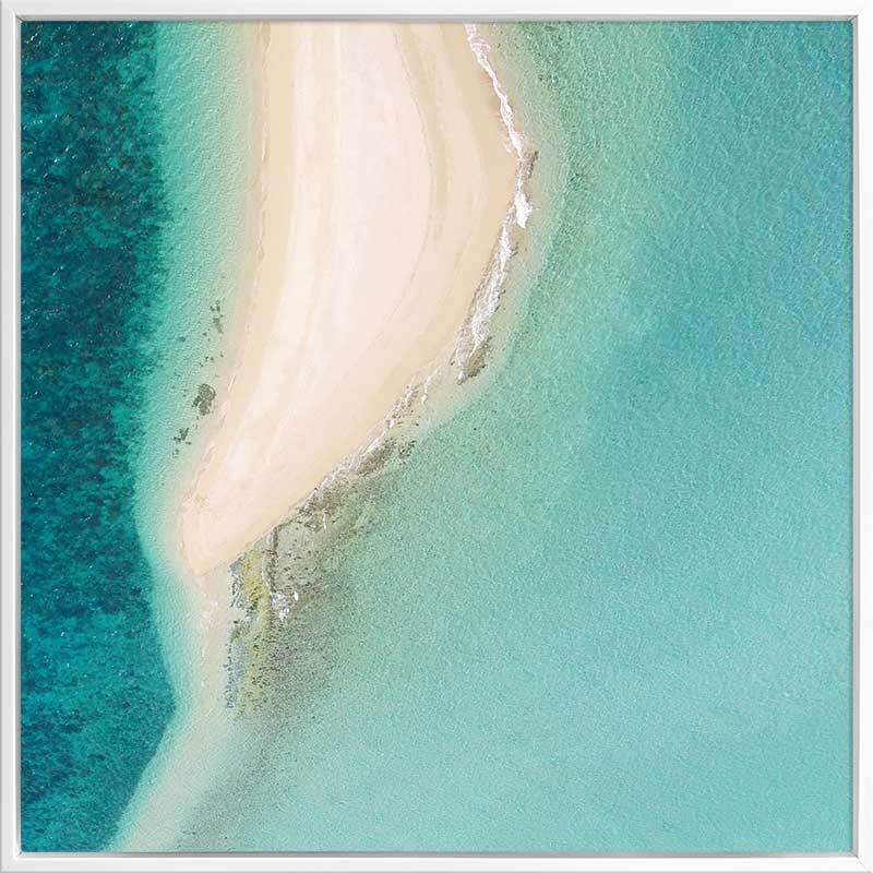 Whitehaven I Canvas Art Print: An aerial photograph of the pure white sands and crystal blue oceans in North Queensland. Pairs with Whitehaven II. 2019 SPRING/SUMMER COLLECTION: SOLSTICE