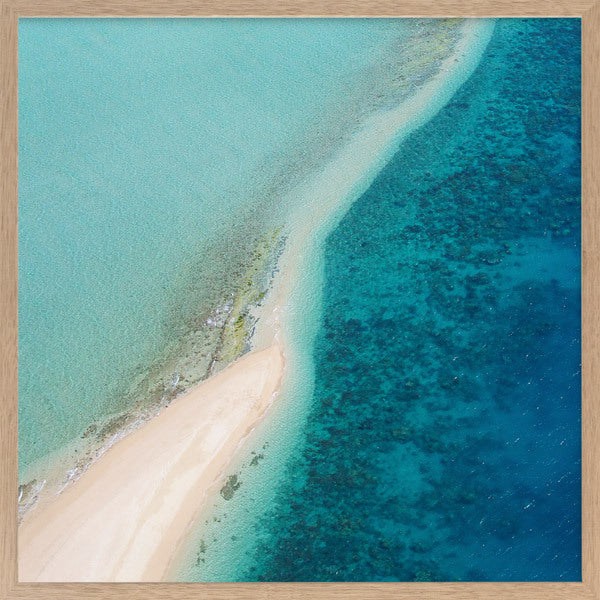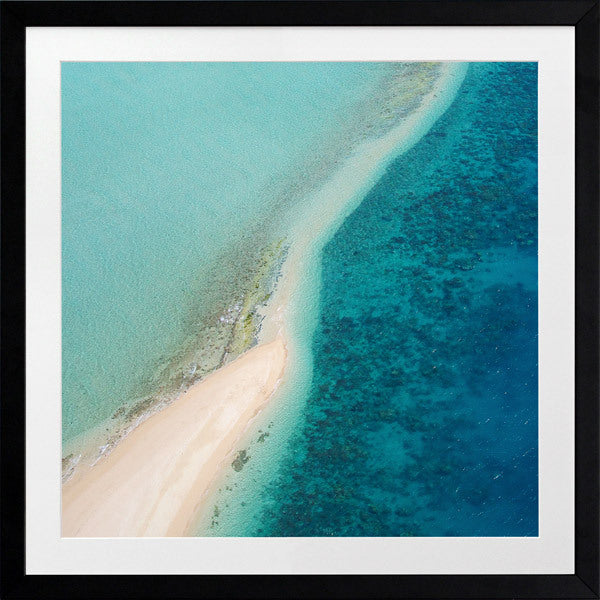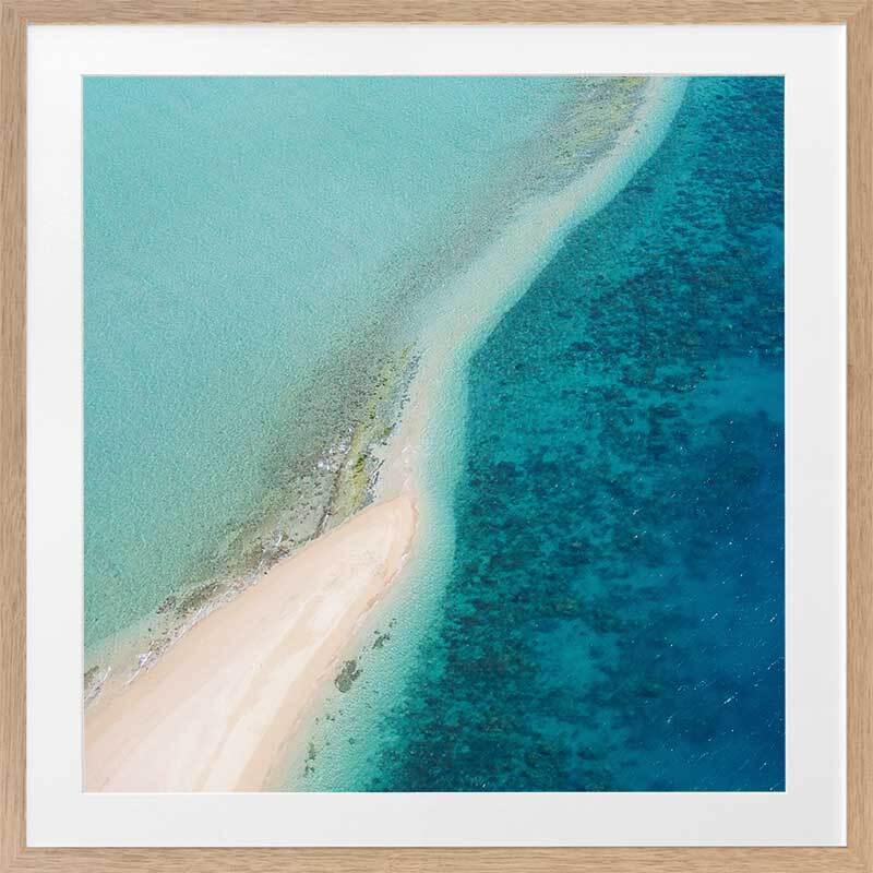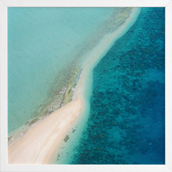 Whitehaven II Framed Print: An aerial photograph of the pure white sands and crystal blue oceans in North Queensland. Pairs with Whitehaven I. 2019 SPRING/SUMMER COLLECTION: SOLSTICE