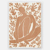 Wholeness V Unframed Art Print - Derived from the abstract work of Matisse, this piece uses a light burnt orange shade complimenting a soft cream background. Featuring a human figure in the centre, sitting among organic leaf-like shapes, an overwhelming sense of serenity comes across with thoughtful, smooth brush strokes and uneven linework. An understated energy that brings character to any wall, suitable for most interior styles.