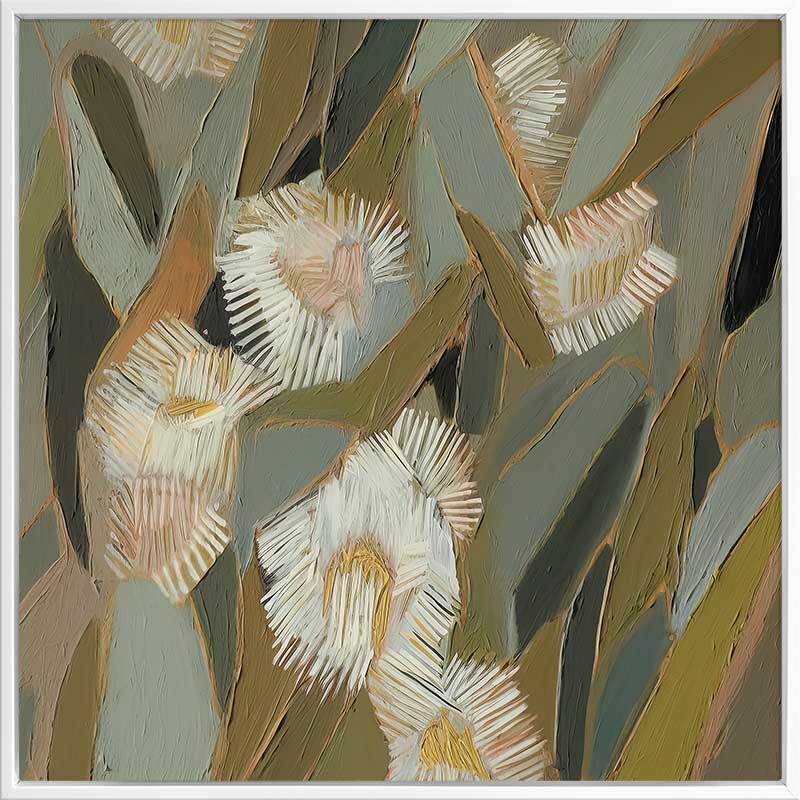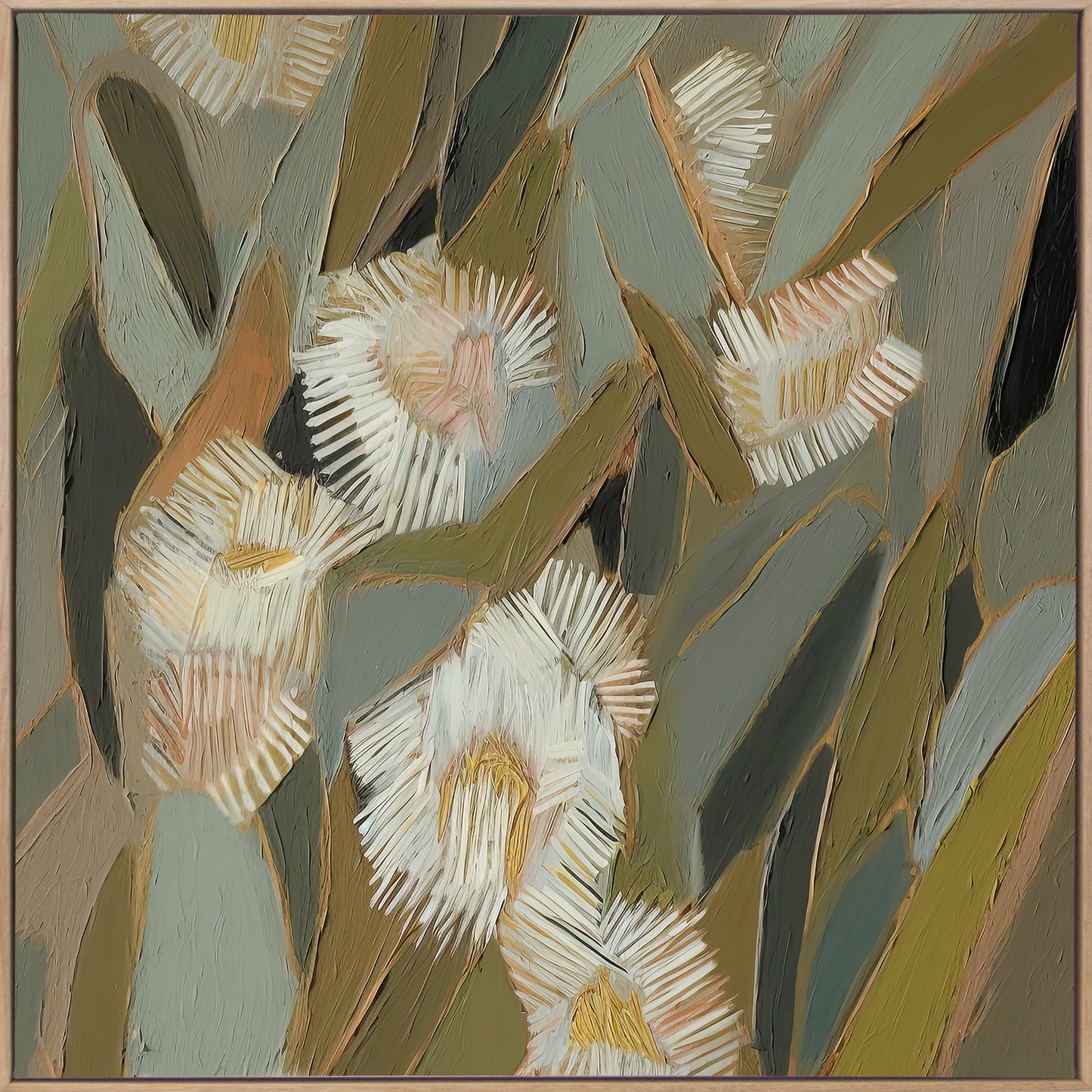 Wild Natives lll Canvas Art Print - Embark on a captivating journey with the immersive collection of Wild Natives. Each artwork skillfully captures the serene and earthy beauty of the bottlebrush tree, emanating a tranquil energy that envelops your space. The graceful brushstrokes dance delicately, bringing the leaves and petals to life and evoking a serene sense of motion. Enriched by a palette of muted greens, soft yellows, and soothing ivory tones, these artworks exude a natural and inviting charm. Pair with Wild Natives I and II.