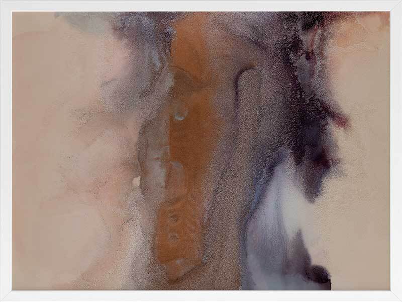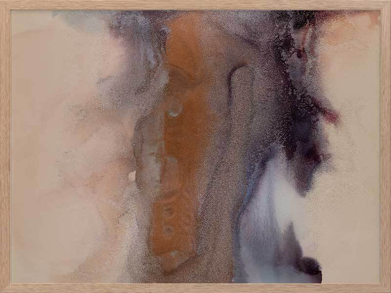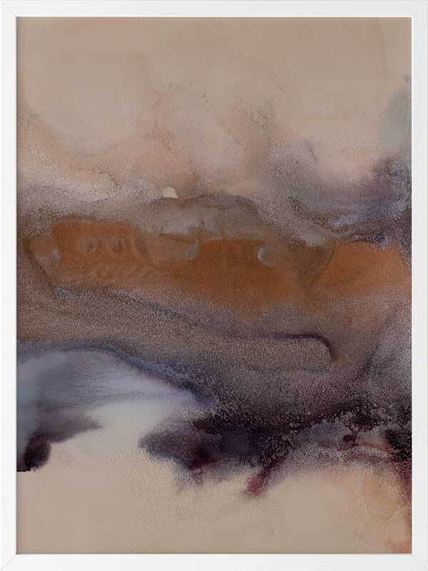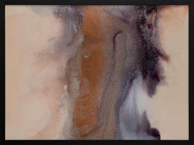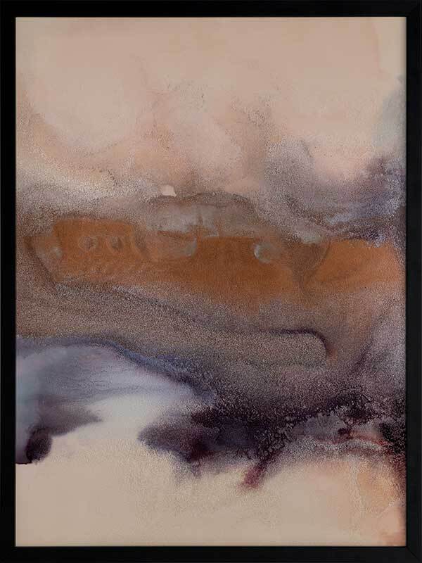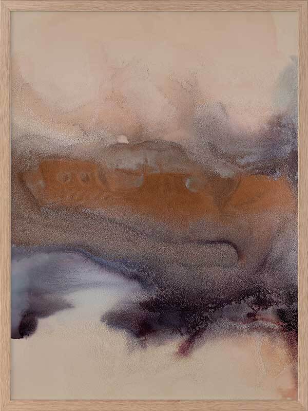 Wild Plum II Framed Art Print - A warm, moody abstract piece featuring a marbling of deep purple, rich copper brown, and soft beige ink clouds. Matches with Wild Plum I, III and IV.