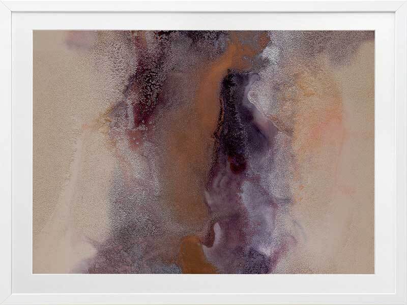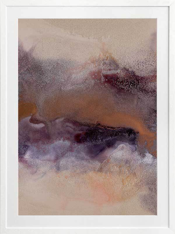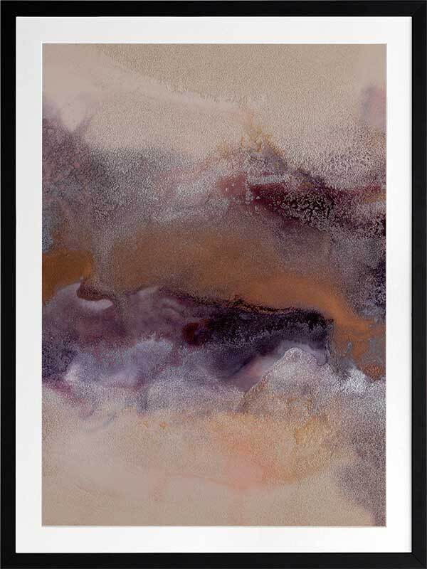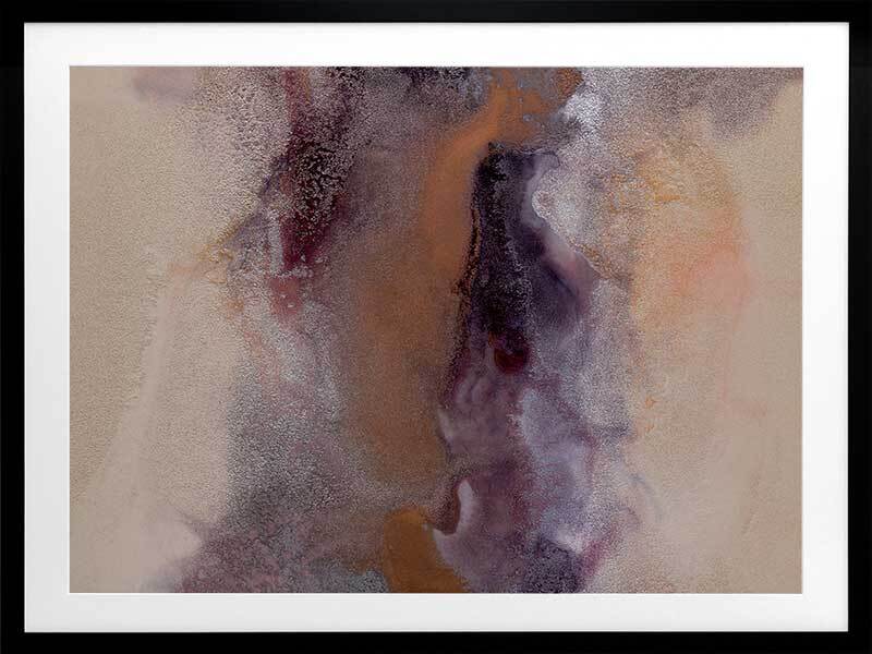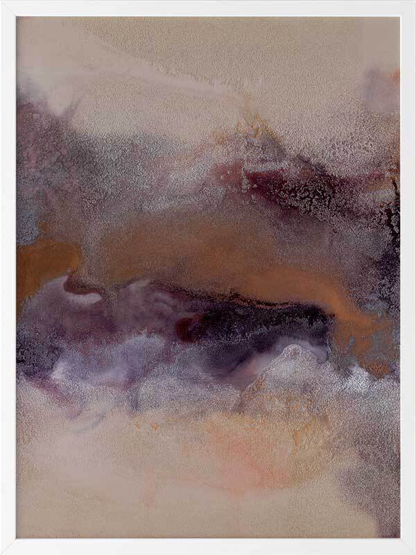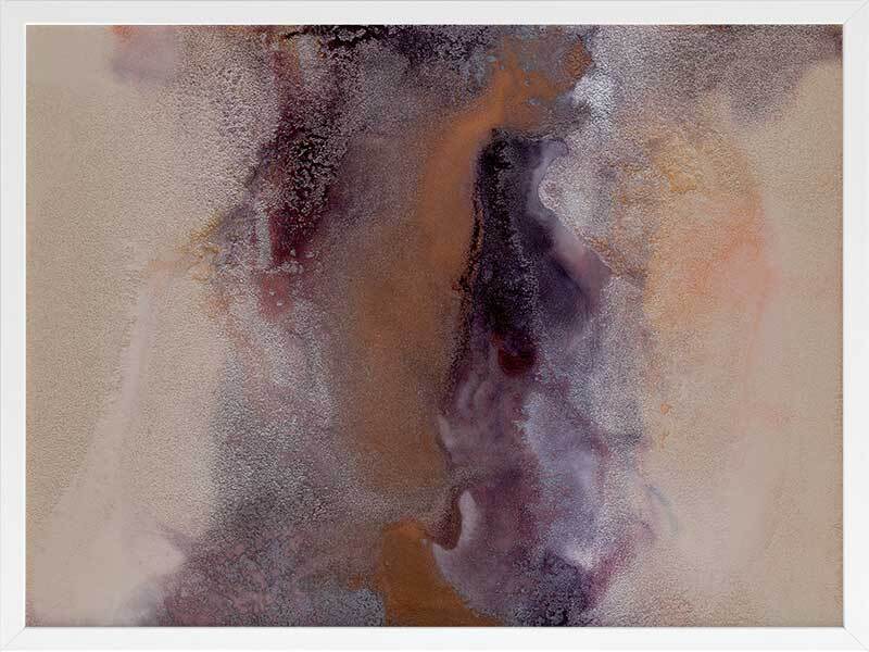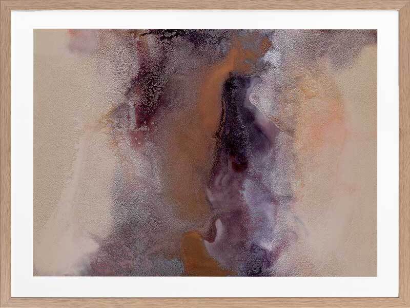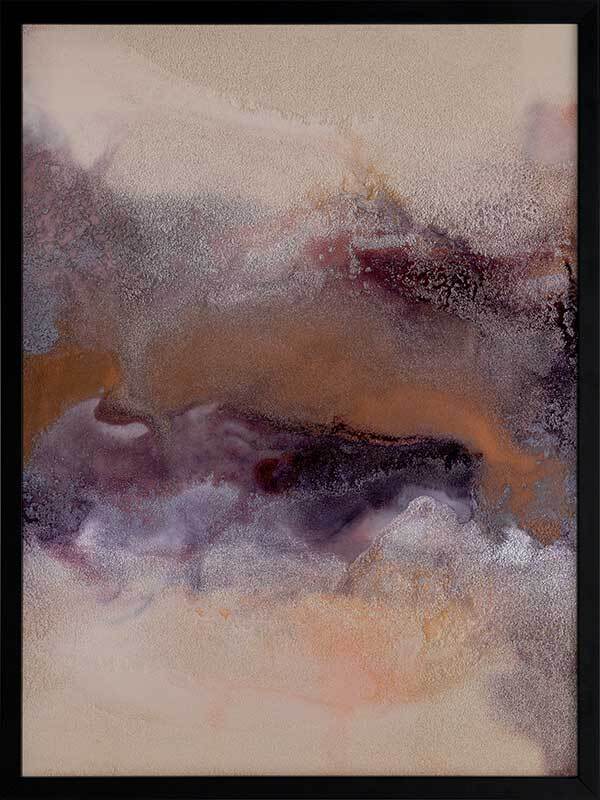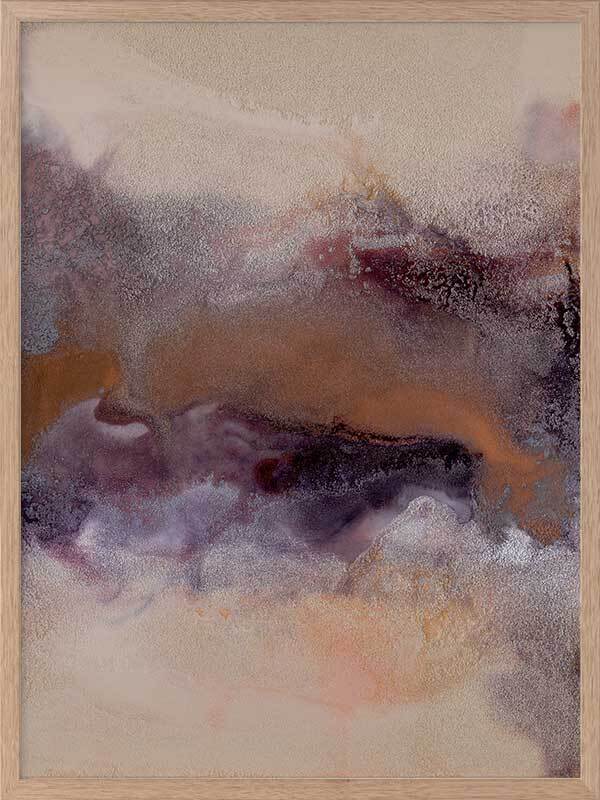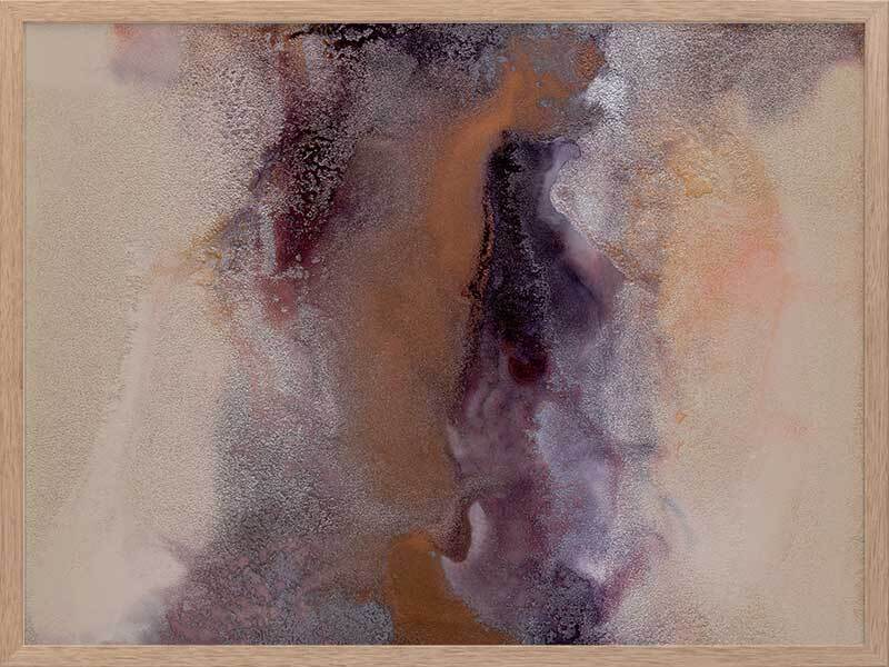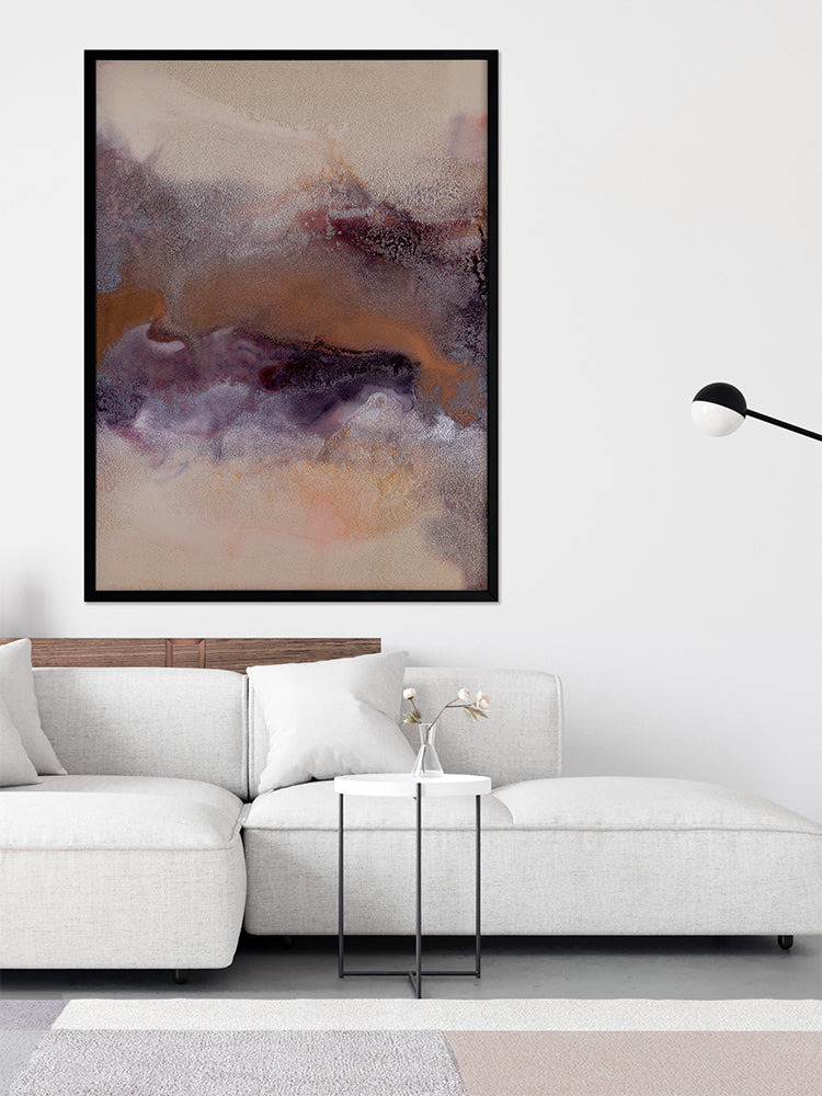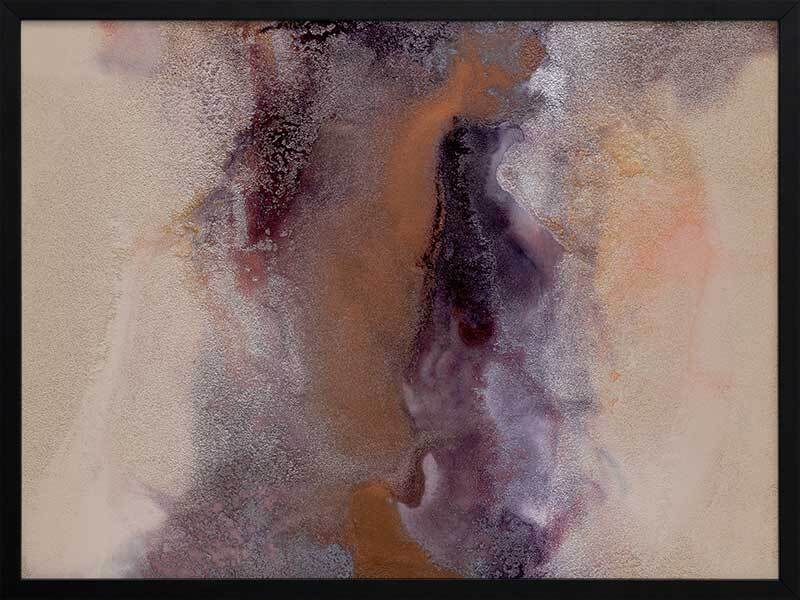 Wild Plum IV Framed Art Print - A warm, moody abstract piece featuring a marbling of deep purple, rich copper brown, and soft beige ink clouds. Matches with Wild Plum I, II and III.