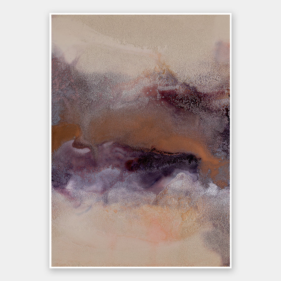Wild Plum IV Unframed Art Print - A warm, moody abstract piece featuring a marbling of deep purple, rich copper brown, and soft beige ink clouds. Matches with Wild Plum I, II and III.