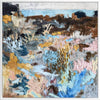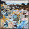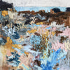 Wildflower Waltz II Canvas Art Print - The wildflowers waltz across the canvas in this abstract artwork, letting each brush stroke tell a story. Featuring a chaotic composition that melds into a symphony of colour and texture, this piece brings a warm energy with shades of brown, blue, yellow, and pink. Pair with Wildflower Waltz I.