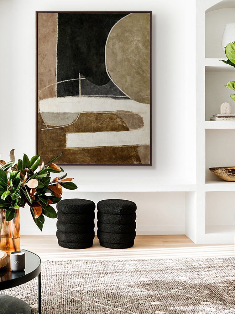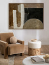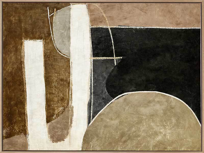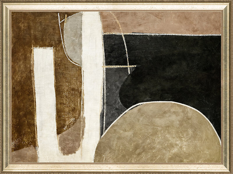 Wistful I Canvas Art Print - Transform any space with this captivating Darren Palmer artwork. This abstract composition features a harmonious blend of earthy browns, blacks, and beiges, creating a balanced yet dynamic visual experience. Ideal for the bedroom or living room, this art print complements any interior design style, adding a sophisticated and contemporary touch to your home decor.