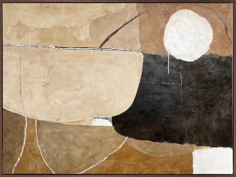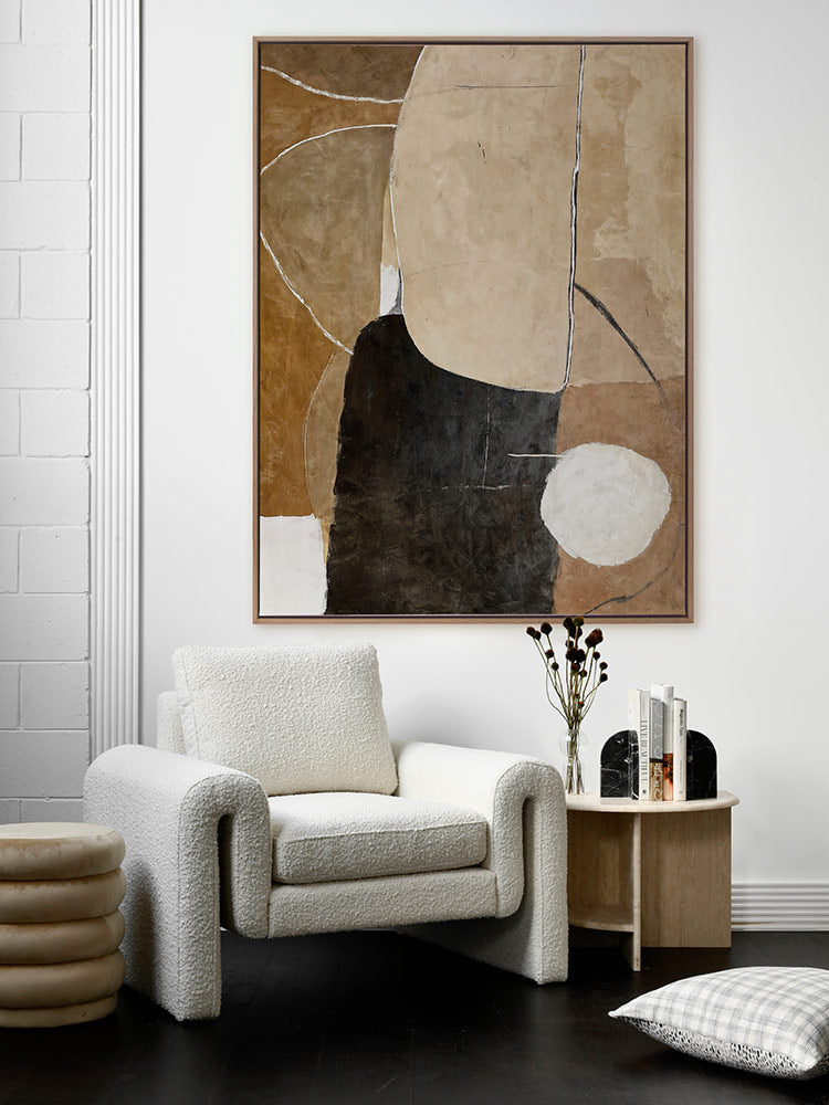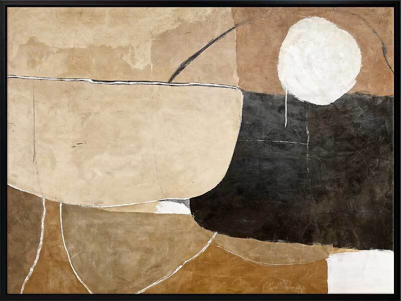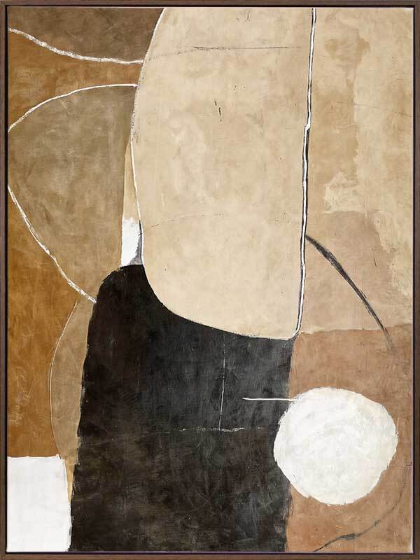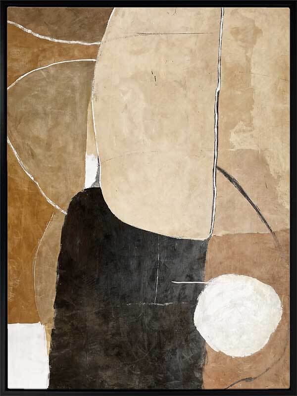 Wistful II Canvas Art Print - Transform any space with this captivating Darren Palmer artwork. This abstract composition features a harmonious blend of earthy browns, blacks, and beiges, creating a balanced yet dynamic visual experience. Ideal for the bedroom or living room, this art print complements any interior design style, adding a sophisticated and contemporary touch to your home decor.