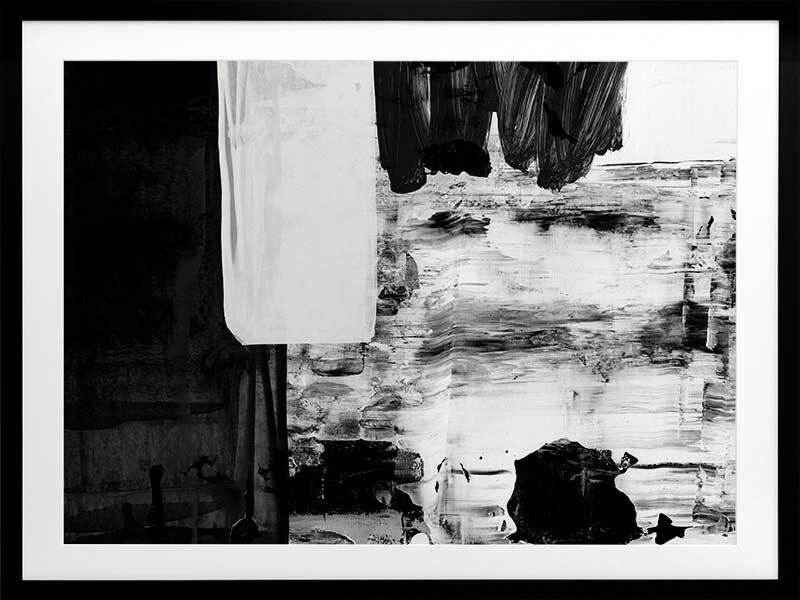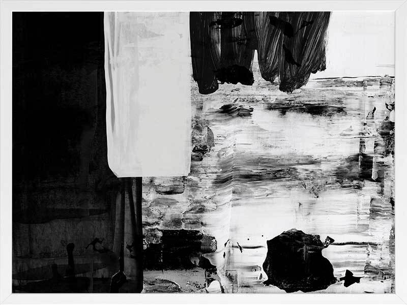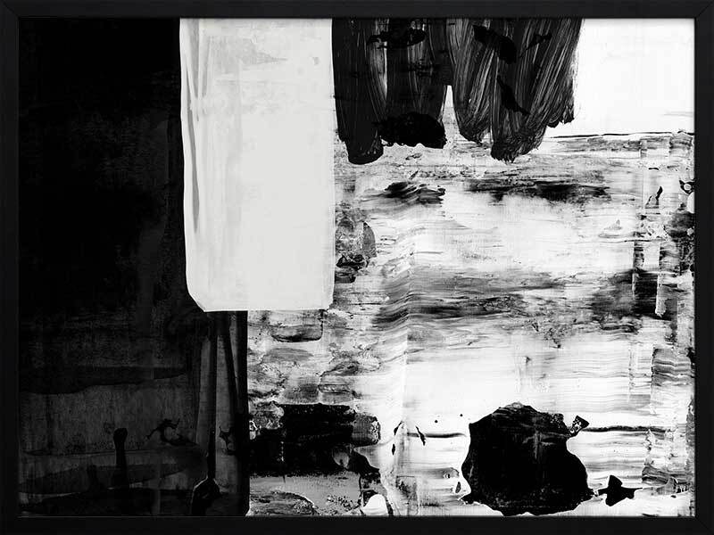 X-Ray Vision I Framed Art Print - Bold, contrasting blocks and streaks of black, white and grey swatches and textures overlap in this monochromatic and masculine abstract piece. Matches with X-Ray Vision II and III.