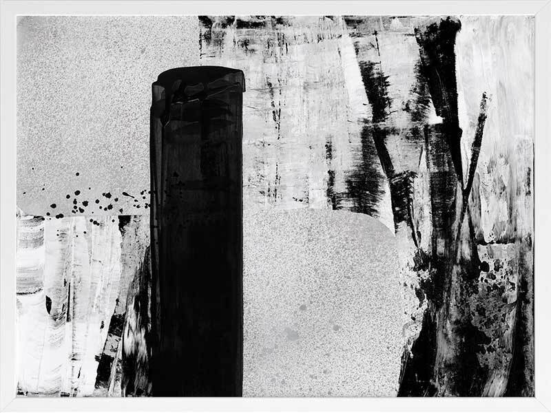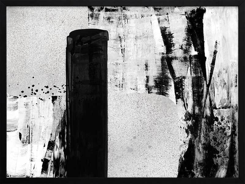X-Ray Vision II Framed Art Print - Bold, contrasting blocks and streaks of black, white and grey swatches and textures overlap in this monochromatic and masculine abstract piece. Matches with X-Ray Vision I and III.