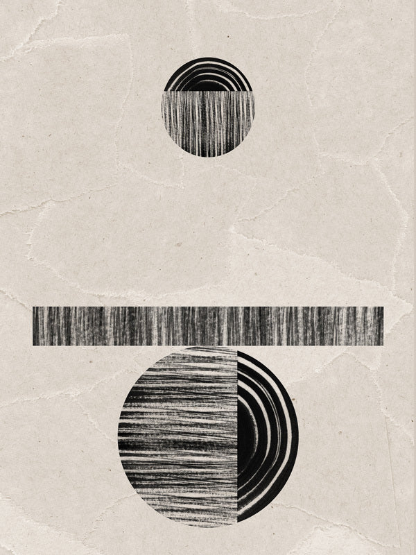Zanzibar - A texture-rich artwork inspired by tribal designs. Featuring balanced black shapes against a brown background.