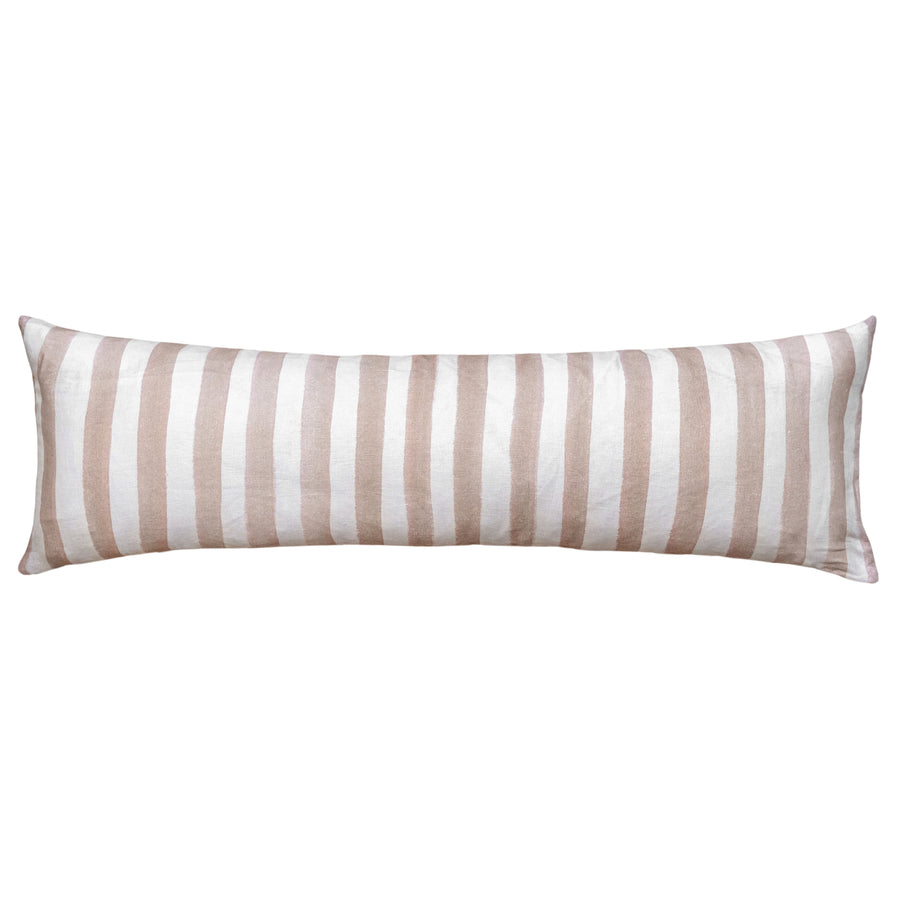 Ziggy Striped Nude Long Lumbar Linen Cushion - 90X30cm - This 100% linen cushion features soft, nude stripes, perfect for adding layered texture and creating tactile appeal in any space. Its light, sophisticated stripe pattern embodies a relaxed vibe, making it easy to incorporate with any existing home decor. Ideal for both bedroom and living room spaces, this timeless linen rectangle cushion elevates the rest of your homeware with its elegant modern boho and Scandinavian style.