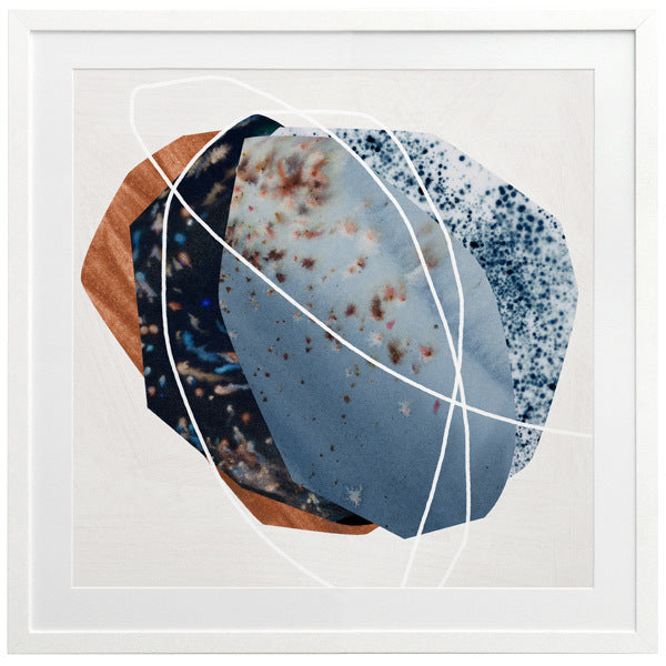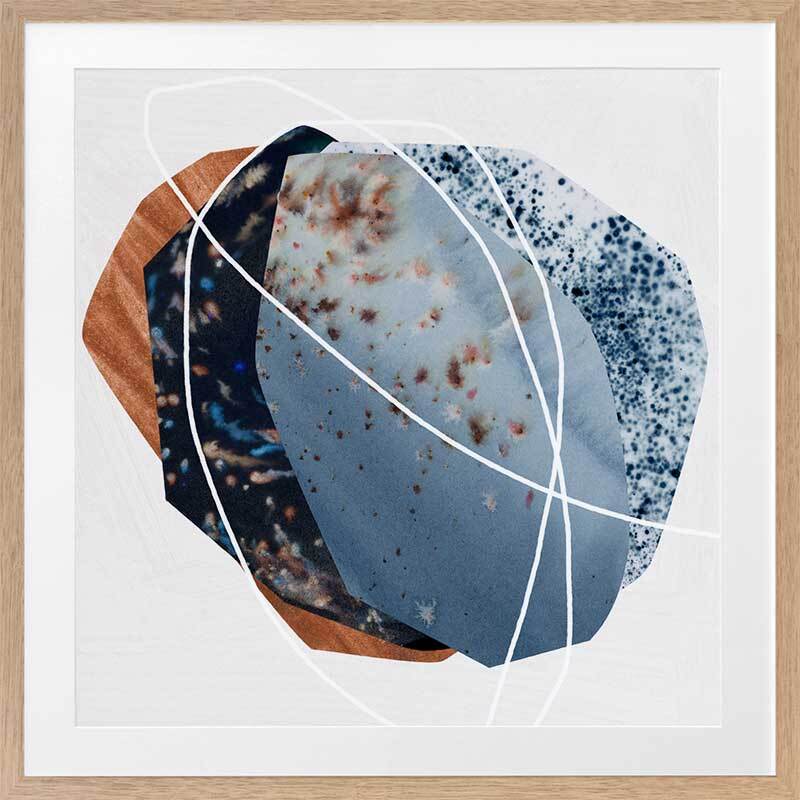 Zircon Framed Print: Inspired by the many facets of a semi-precious stone, Zircon is a beautiful exploration of colour, texture and movement, in blue, black and copper tones. Pairs with Jasper. 2018 SPRING/SUMMER COLLECTION: REMINISCE